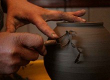 Hélène travaille un grès de Saint-Amand-en-Puisaye – Nièvre.