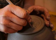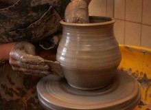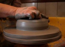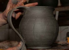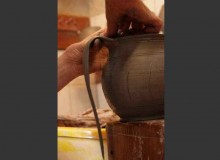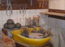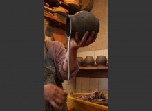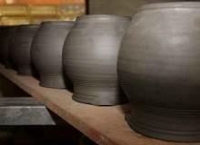Quand les pièces sont bien sèches – au bout de 15 jours à un mois – vient l’étape de l’émaillage par trempage à la louche.